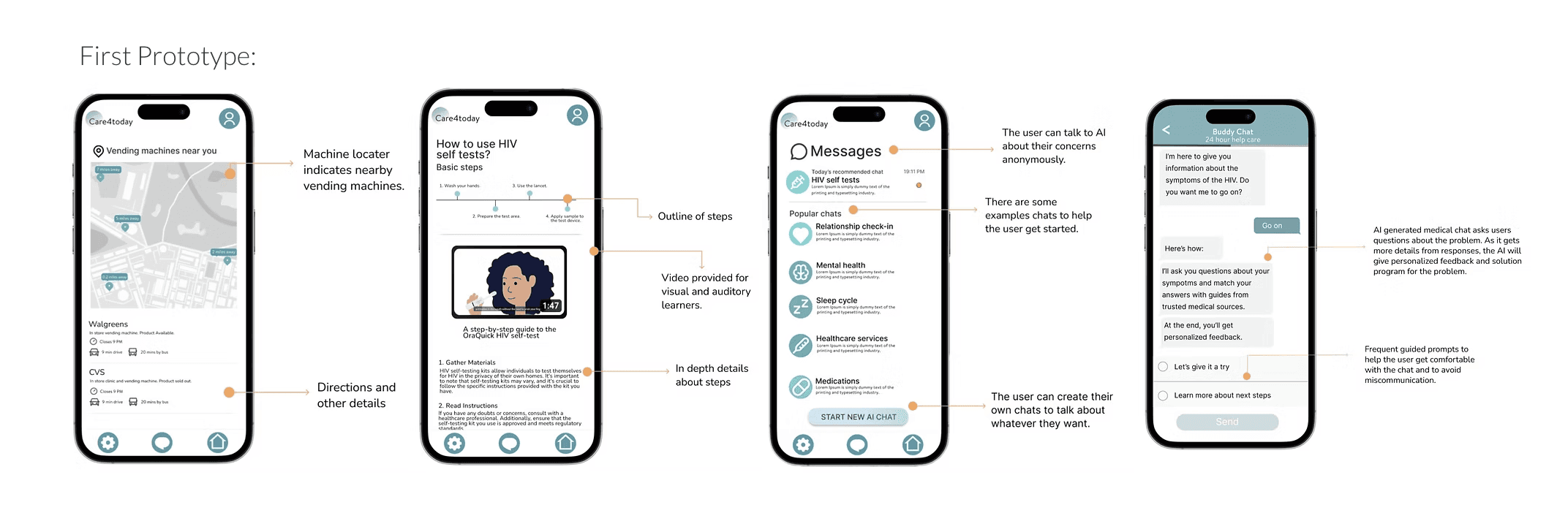 The final features we focused on include a locator that helps people find care resources nearby and a calendar that supports tracking their health journey, which we know is time-sensitive.