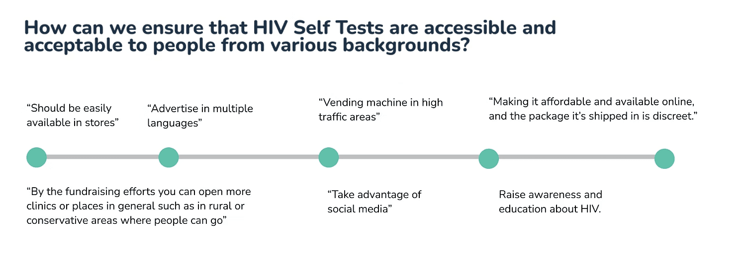 In this project, I explored how we can fight HIV stigma through education and inclusive, user-friendly design, using insights from the research we did. More specifically focusing on how to increase accessibility of HIV Self Test Kits.